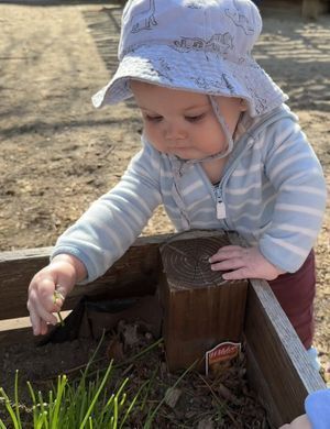 Children spend time outdoors daily in most weather. On bitterly cold days, babies stay inside while mobile toddlers may venture out for a short breath of air, even if it takes longer to dress them than we actually stay outdoors! On a rainy spring day, you may find us exploring puddles or mastering umbrellas.